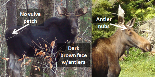 The next page asks some basic information including your name, address and your contact phone number. Page 3 asks when you saw the Moose, how many Moose, what gender(s) and age(s), and where you saw the Moose or Moose sign. You can also input what the Moose was doing when you saw it and the habitat you observed the Moose in, such as a Wetland or a Hardwood Forest. See below images DEC posted to help identify if the Moose you spotted is Male or Female.